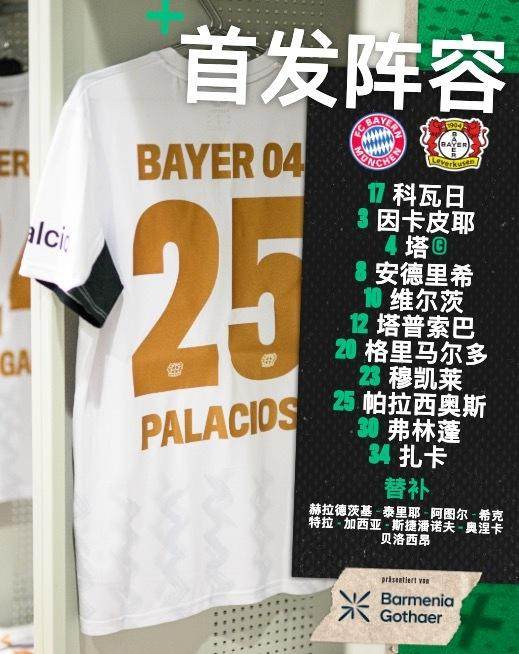 全场比赛结束,格里马尔多助攻特拉头球制胜,勒沃库森在安联竞技场1:0力克拜仁,晋级德国杯8强!