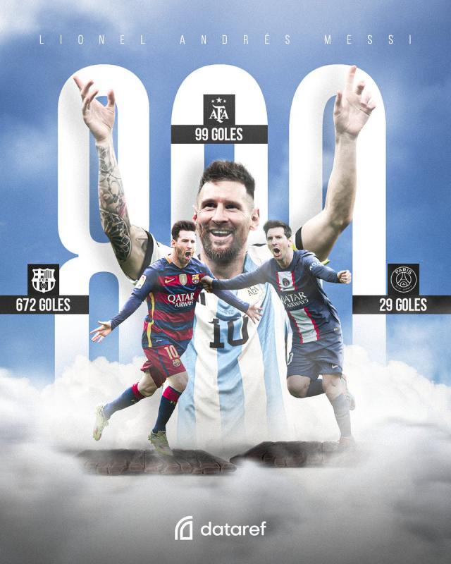 【800】梅西打进职业生涯第800个进球:巴塞罗那672球,阿根廷队99球,巴黎圣日耳曼29球;62次任意球,108次点球,542次禁区内,88次禁区外,670次左脚,101次右脚,26次头球,3次其它部位;56次帽子戏法,209次梅开二度,525场比赛进球。