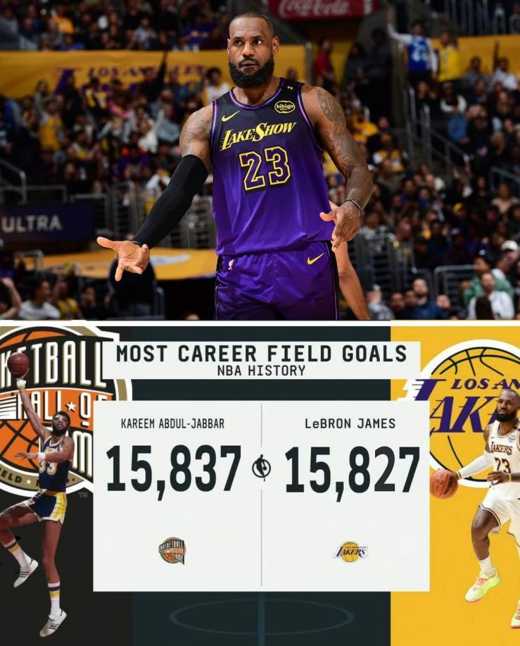 赛前詹姆斯个人生涯的总进球数是15827个,历史第一贾巴尔进球数是15837个,他只差10个进球就可以追平历史第一,只要进11个球就可以单独成为NBA历史进球榜排名第一,而是东契奇真的不怎么给他传球。