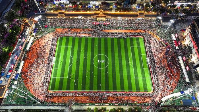 7月26日,人们在榕江“村超”球场观看球赛(无人机照片)。新华社记者 杨文斌 摄借助举办体育赛事,一人比赛多人消费,一日比赛多日停留,带动城市旅游、餐饮、住宿、交通等相关产业全面发展,这就是赛事经济。以赛为媒,变赛事流量为经济增量,成为当前众多城市的发力方向。
